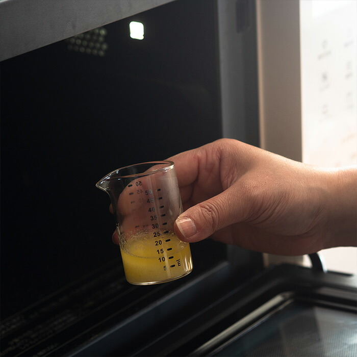 注ぎ口のキレが良く、液だれしにくい設計なので、計量後はそのまま食卓へ。ミルクやハチミツ、ソースを入れるピッチャーやミニボトルとしても使えます。「道具」としての機能性と、「器」としての美しさを兼ね備えた多機能さが、ミニマル派の心をくすぐります。